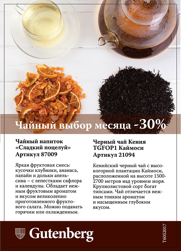 В традиционной акции "Чайный выбор месяца" в июне участвуют 2 чая, которые Вы можете приобрести со скидкой 30%: