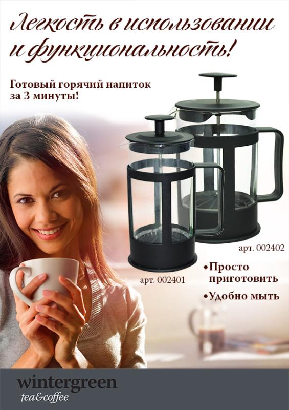Новые френч-прессы из жаропрочного стекла со съемным пластиковым держателем. Френч-пресс предназначен для приготовления кофе, напитков на его основе и чая.