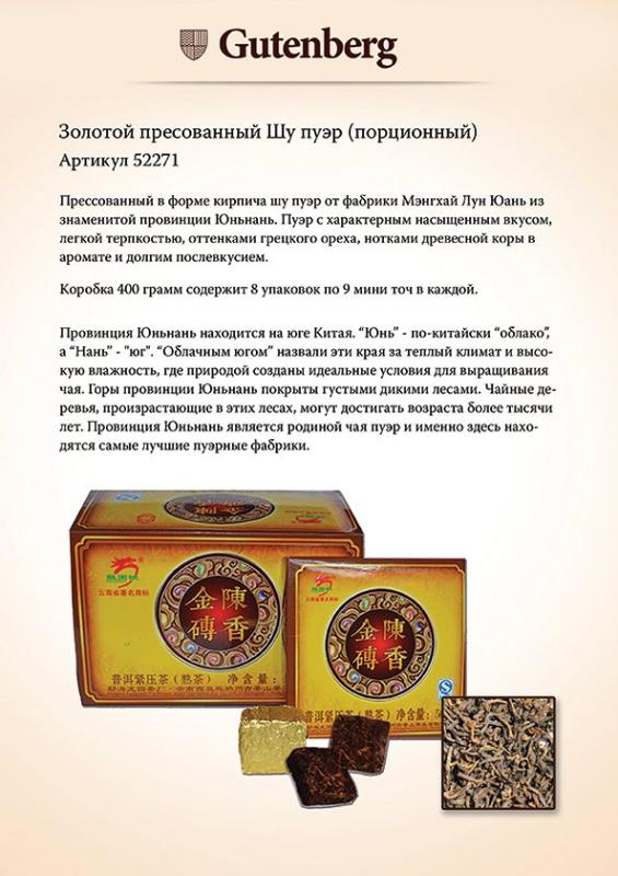 —Новинка! Золотой порционный прессованный Шу пуэр