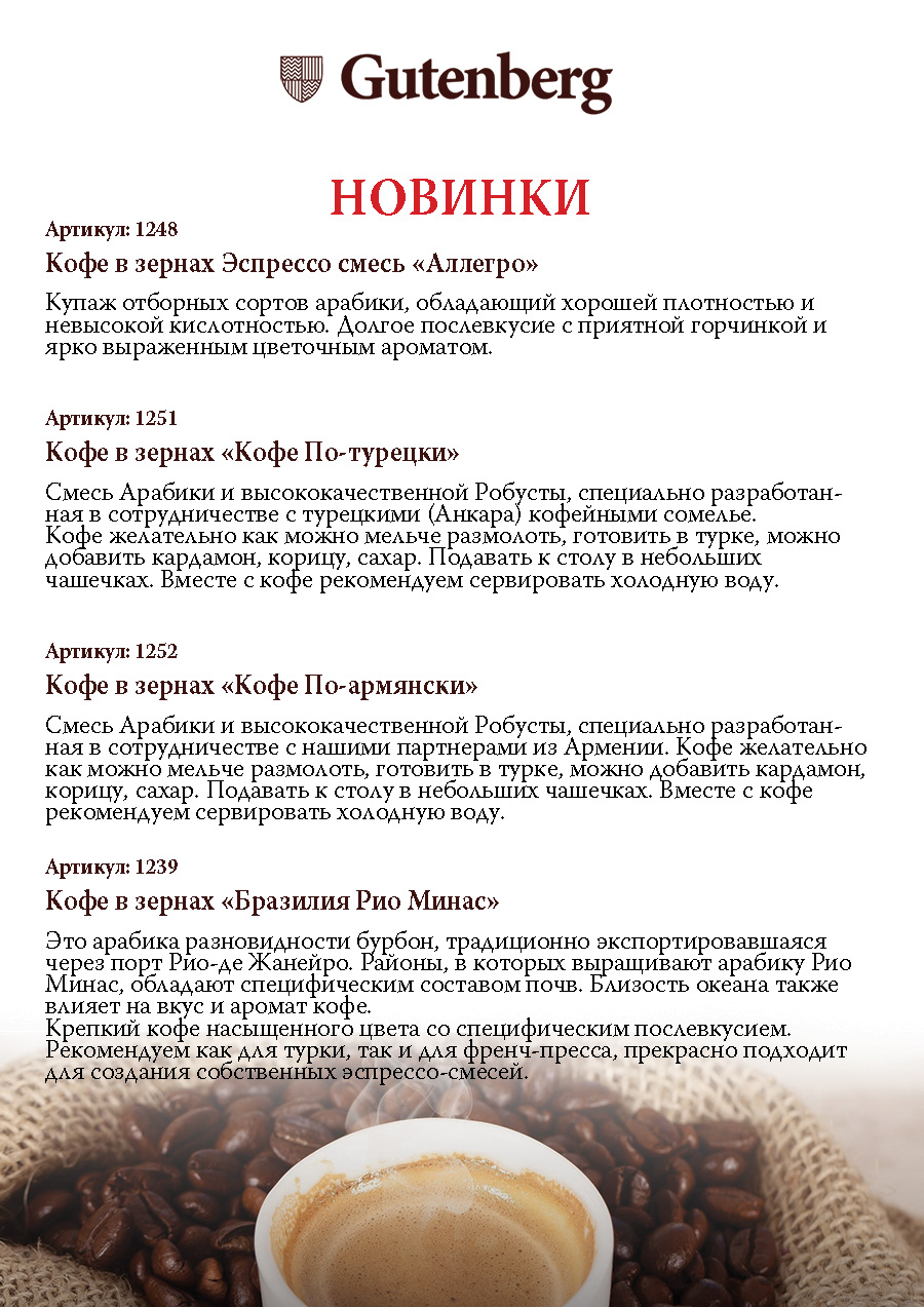 Новинки кофе Gutenberg