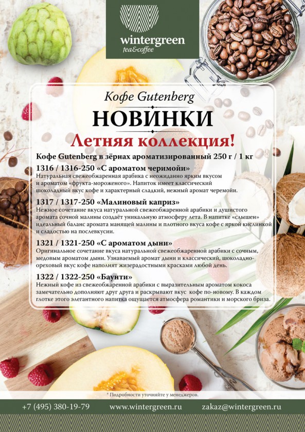 Новинки! Летняя коллекция кофе Gutenberg.