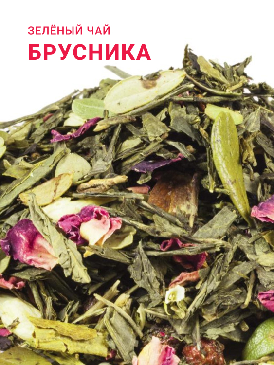 Чай зелёный сенча с добавлением листа брусники, ягод красной смородины, цветов жасмина, лепестков розы, медовых гранул и ароматом лесной ягоды.