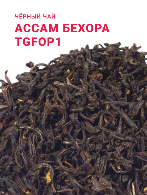 Классический чёрный чай из Ассама — плантационный листовой сорт из индийского штата Ассам. Обеспечивает ярко-красный настой с крепким терпким вкусом и пряным тонким ароматом. Солодовое послевкусие дополняет насыщенность, высокое содержание кофеина даёт выраженный тонизирующий эффект.