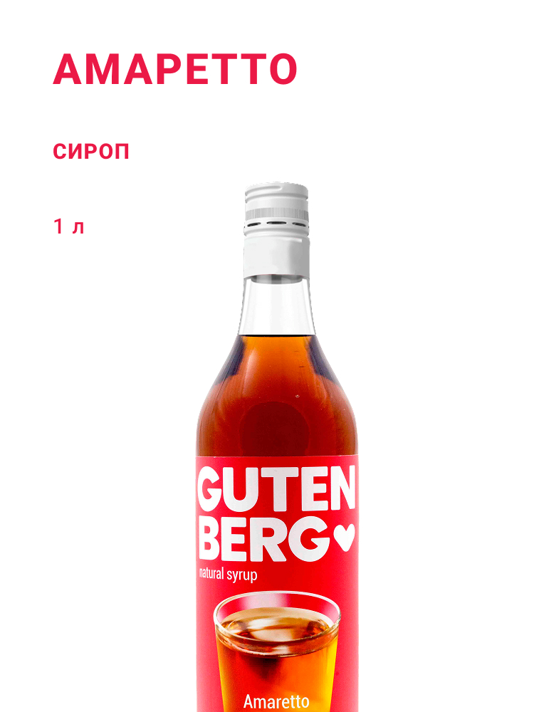В барной культуре сироп для коктейлей играет роль важного компонента. Он придает кофе, любому алкогольному и безалкогольному коктейлю, газировке, десерту, выпечке характерный вкус и аромат. В коллекции сладостей Gutenberg мы рады предложить новый ассортимент сиропов с яркой палитрой вкусов и ароматов. Золотисто-янтарный сироп «Амаретто» - это тонкий, богатый вкус с изысканной горчинкой и ароматом миндаля. Напитки с добавлением сиропа "Амаретто" сразу же приобретают богатый вкусовой оттенок, в котором переплетаются сочные абрикосы, восточные пряности и нотка миндаля. Чаще всего используется для добавления в кофе и для выпечки кондитерских изделий, а также прекрасно сочетается с молоком, какао, горячим шоколадом.