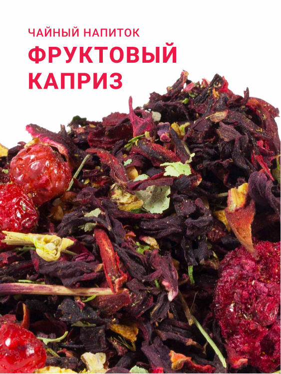 Ароматный и яркий напиток на основе гибискуса с ягодами ежевики и красной смородины, кусочками яблока, цветками липы, листьями стевии и сочным ароматом тропического фрукта личи.