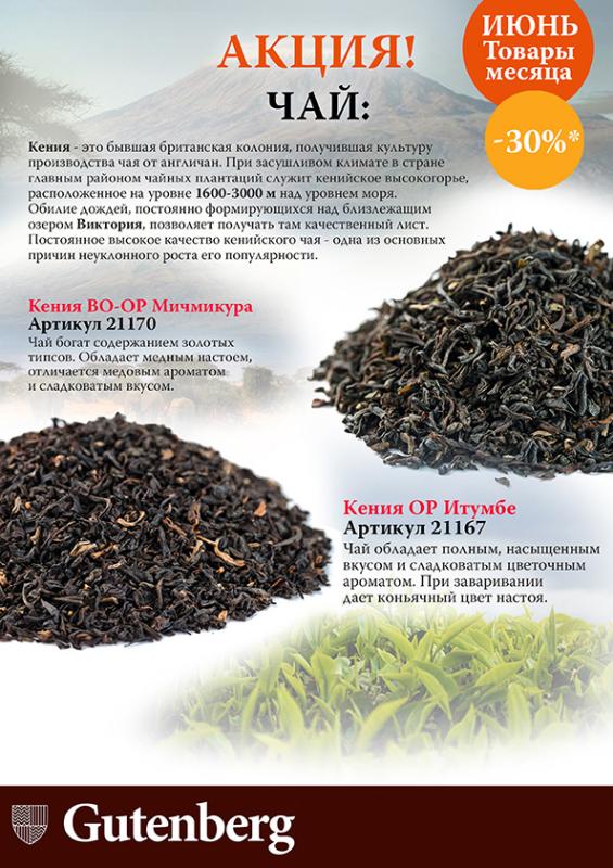В июне приобретайте кенийские чаи Gutenberg со скидкой 30%.