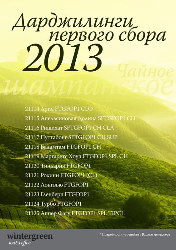 Уже не первый год год мы с гордостью представляем Вам один из самых изысканных и долгожданных видов чая — дарджилинг первого сбора! В этом году в коллекции Гутенберг представлен чай первого сбора 2013 года с 12 лучших плантаций Дарджилинга