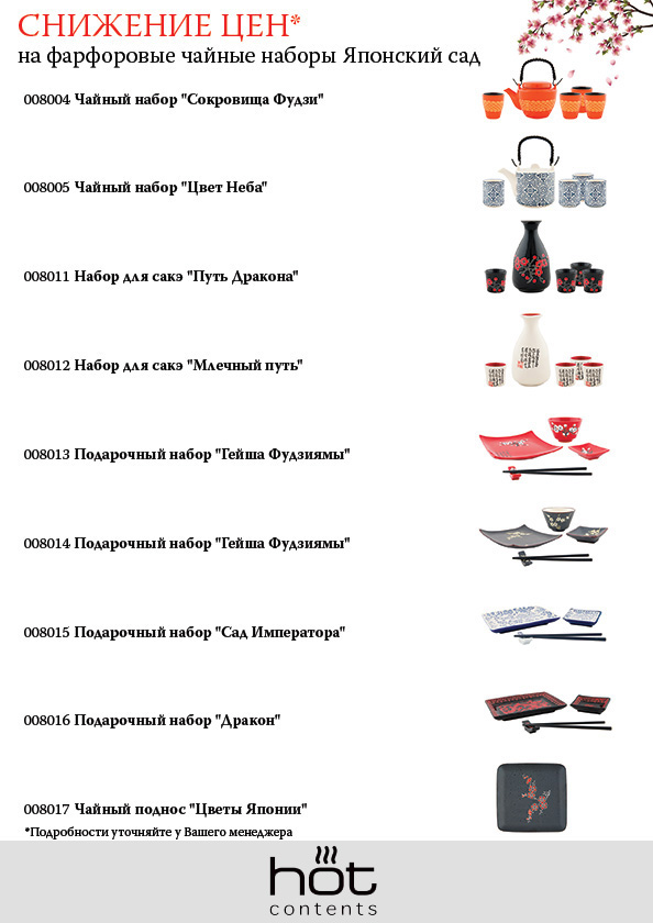 Снижение цен на фарфоровые чайные наборы  "Японский сад".