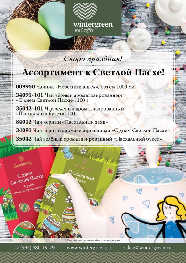 Близится праздник, и мы подготовили пасхальный ассортимент, который послужит прекрасным подарком и поводом для встречи с друзьями!