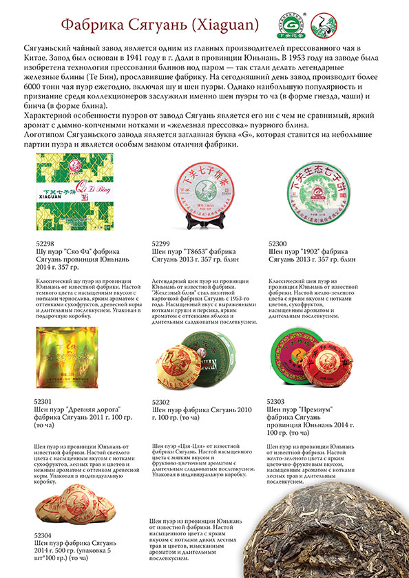 В нашем ассортименте коллекция оригинальных пуэров известной фабрики Сягуань (Xiaguan)