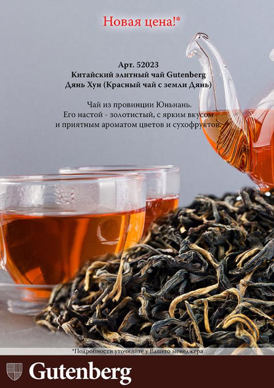 Новая цена: арт. 52023 Китайский чай Gutenberg Дянь Хун (Красный чай с Земли Дянь) Чай из провинции Юньнань.