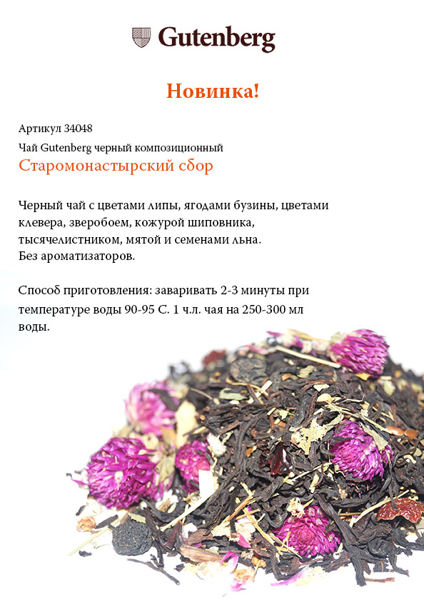 Чёрный чай "Старомонастырский сбор" - новинка в коллекции композиционных чаёв Gutenberg.