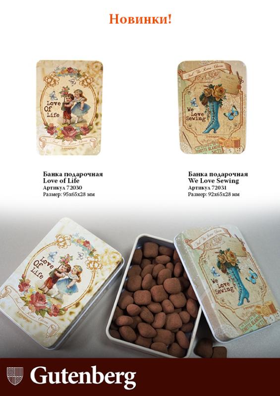 Очаровательный дизайн наших новых баночек не оставит Вас равнодушными, а удобный размер (95*68*28 мм) позволит хранить там и чай, и сладкие лакомства, например, драже из коллекции Gutenberg.