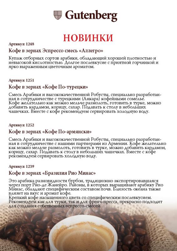 Новинки кофе Gutenberg