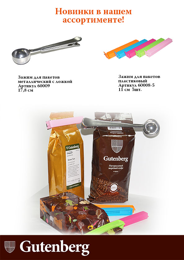 —Новинки в нашем ассортименте! Зажимы для пакетов с кофе