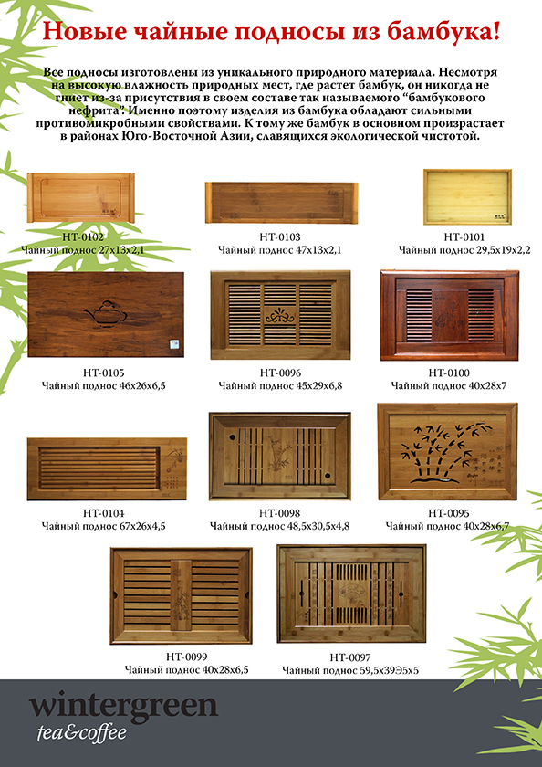 Все подносы изготовлены из уникального природного материала. Несмотря на высокую влажность природных мест, где растет бамбук, он никогда не гниет из-за присутствия в своем составе так называемого “бамбукового нефрита”. Именно поэтому изделия из бамбука обладают сильными противомикробными свойствами. К тому же бамбук в основном произрастает в районах Юго-Восточной Азии, славящихся экологической чистотой.