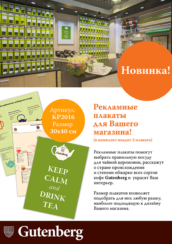 Удобный формат плакатов - 30*40см - позволят подобрать для них любую рамку, которая наиболее подходит к интерьеру Вашей торговой точки.
