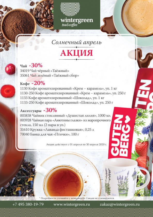 Специально для Вас мы подготовили СКИДКИ: - на чай -30% - на кофе - 20% - на аксессуары - 30%
