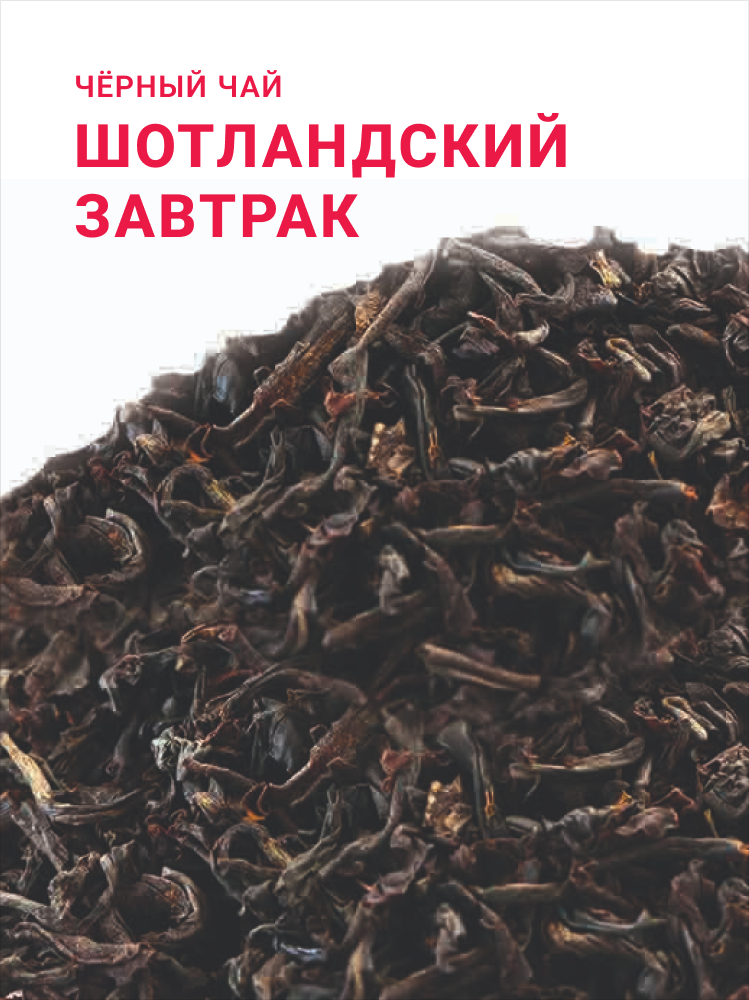 Чай чёрный «Шотландский Завтрак» — купаж чёрного чая Ассам и красного чая из Кимуна высшего сорта. Терпкий вкус сочетается с бодрящим ароматом, идеален для энергичного начала дня.