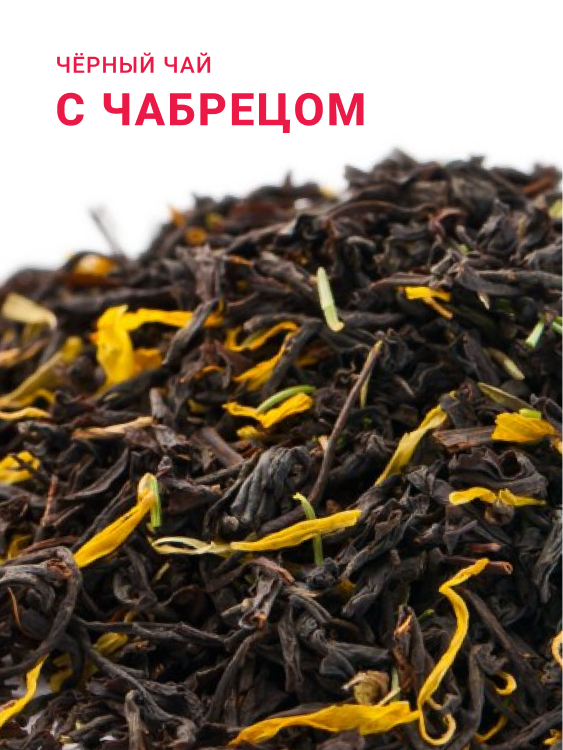 Состав: чёрный чай, лепестки календулы, чабрец, без ароматизаторов.