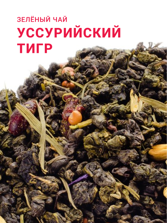 Купаж зелёных чаев улун и ганпаудер с сушеной клюквой, цветами жасмина, листьями бамбука, семенами лимонника и тонким ароматом жасмина.