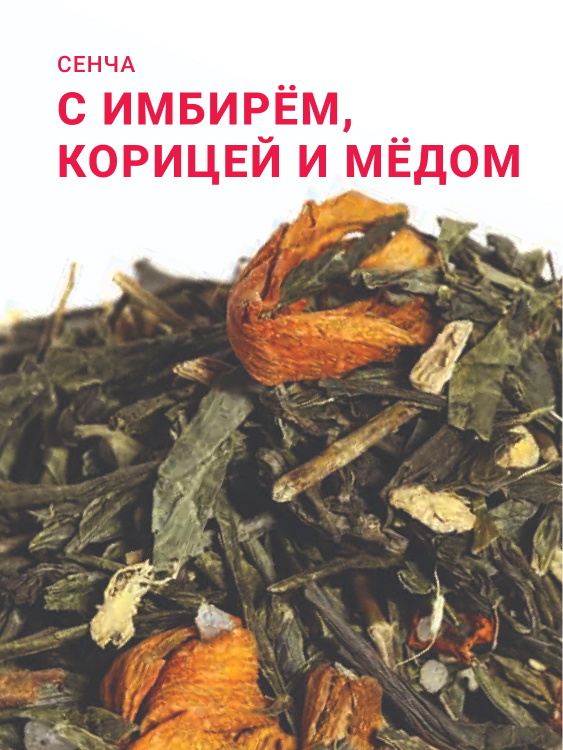 Зелёный чай сенча с добавлением имбиря, корицы и медовых гранул, украшенный цветами лилии. Настой нежного золотистого цвета обладает пикантным ароматом и сладковатым медовым послевкусием. Нежный вкус сенчи дополняют пряные нотки корицы и имбиря. Такой чай отлично согреет долгими зимними вечерами. Не содержит ароматизаторов.